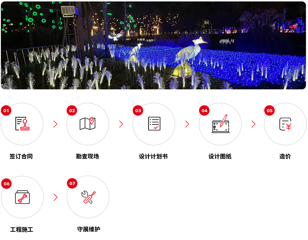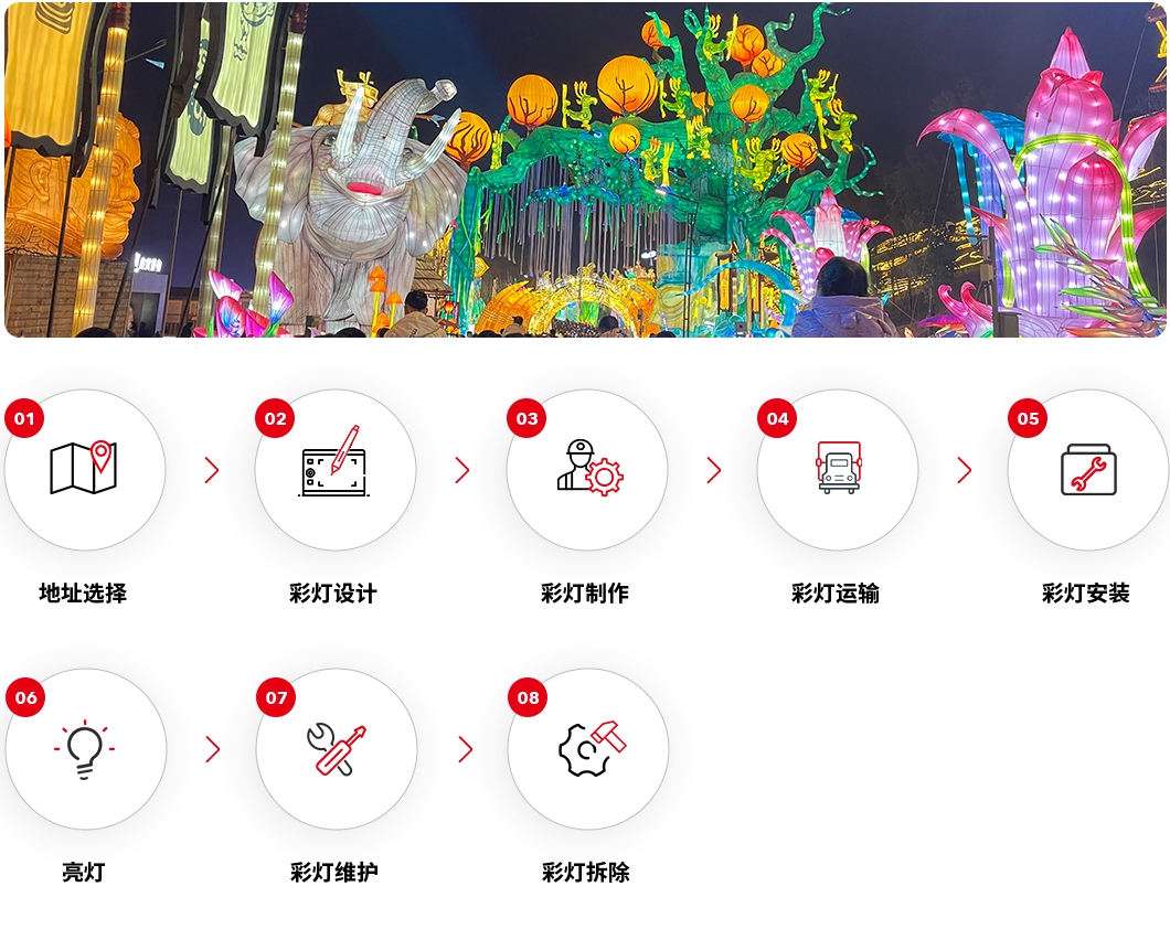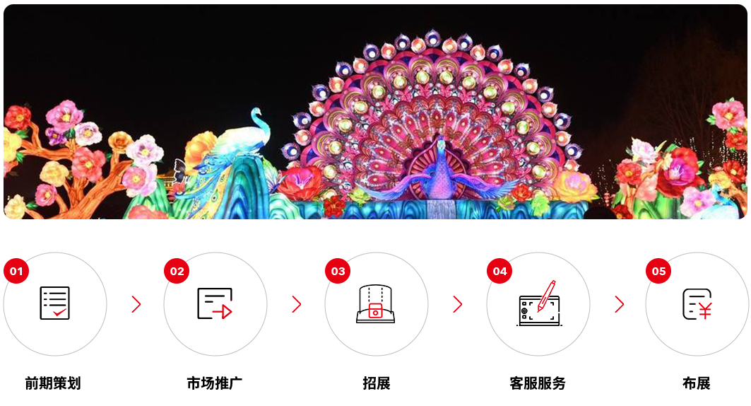 公司的專業管理團隊擁有30余年管理經驗,有成熟的燈會全產業鏈服務體系,從事包括燈會選址、彩燈設計、制作、運輸、安裝、展出、守展、銷售、運營等全產業鏈業務內容。