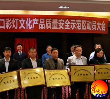 熬必強、陳張銘在會上做了重要講話。會上自貢燈貿集團股份有限公司等8家彩燈企業被示范區領導小組授予“自貢省級出口彩燈文化產品質量安全示范區龍頭企業 ”。