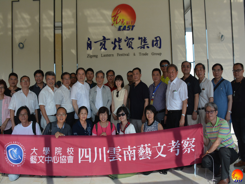 8月5日下午,臺灣地區大學院校藝文中心協會訪問團一行24人在文化部港澳臺辦公室臺灣處處長何婕、省文化廳外聯處處長任丘、市文廣新局副局長江波等領導的陪同下,走進燈貿集團,近距離感受彩燈文化。燈貿集團公司執行總裁陶建軍、集團公司旗下國韻燈貿公司總經理李斌參加了此次交流座談。
