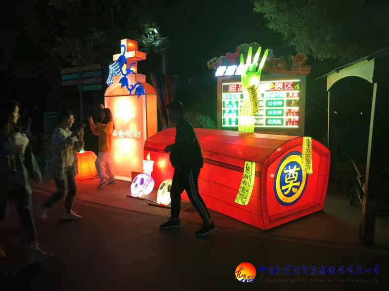 東方彩燈攜手武漢歡樂谷10月12日點亮萬圣節之夜,精心設計制作的14組“萬圣節”燈組驚艷亮相,各種造型鬼魅的燈組引得游客大為驚呼,使得大家躍躍欲試全新的七大鬼屋,勇敢的心油然而生,驚泣的淚隨處可見,過關的笑精彩無比。