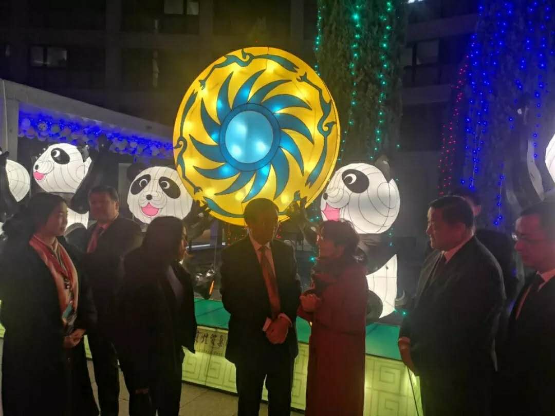 為了此次論壇,自貢燈貿集團精心準備了一年之久,選取了最具有代表元素的《熊貓送禮》、《紅紅火火》、《友誼長存》等燈組,把活動現場裝扮成了色彩斑斕的世界,將會場氣氛營造的充滿濃濃的溫情和浪漫,不僅展現了悠久燦爛的蜀國文化,更突顯了地域風情。通過燈組展示,讓更多的友人了解四川、熱愛四川,和四川建立更緊密的國際友好合作關系!