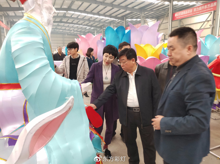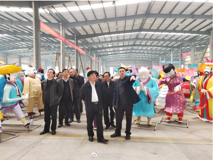 燈貿集團董事長劉婭、執行總裁陶建軍陪同考察團一行參觀了東方彩燈(出口)基地,觀摩彩燈制作過程,詳細了解了彩燈工藝流程。