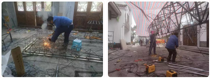 焊接也是一道十分重要的工序,碩大的花燈能夠穩當立起來,形成立體模樣,全靠焊接做骨架。而這個活計又十足費工夫,在生產現場,焊工班的師傅戴著防護面罩,手下焊頭處火光四濺。做成一個花燈骨架,焊接點往往多達數百上千個。