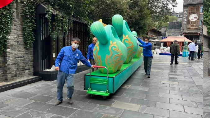 滿繪彩色圖案的金沙象牙燈組、文物造型設(shè)計燈組《嗚嚕嚕》,演繹著傳統(tǒng)文化的“國潮”新風(fēng)尚,彰顯著文創(chuàng)帶給這座城市的新鮮感和創(chuàng)造力。分布在寬窄巷子景區(qū)燈組,讓游客一腳踏入光影幻境中的古蜀王國。
